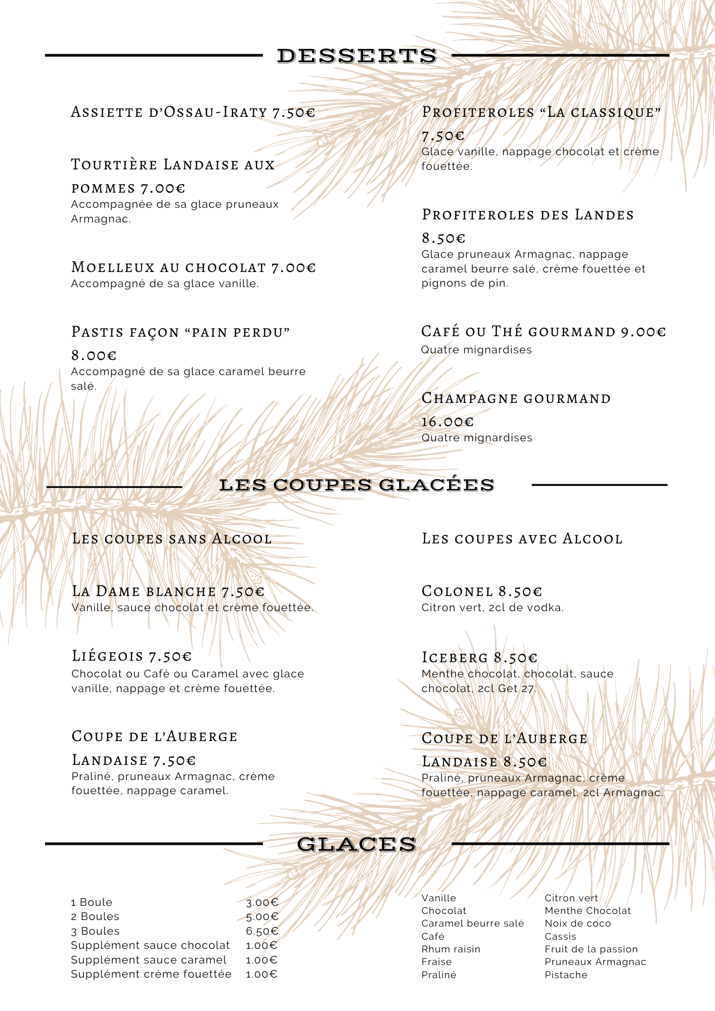 Découvrez la carte de notre cuisine gastronomique à Lüe